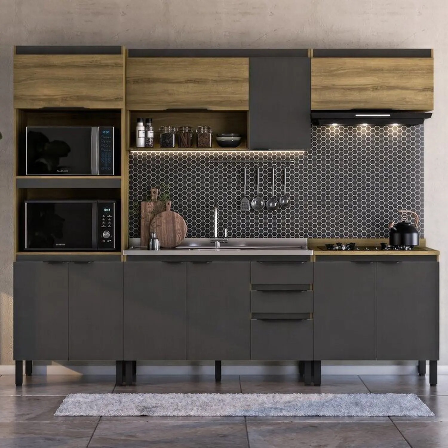 Cozinha Modulada 5 Peças 2 Aéreos 2 Balcões E 1 Torre Quente Mag Mel/grafite .